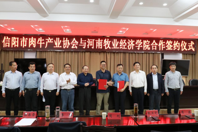 签约仪式上,席磊代表我校与信阳市肉牛产业协会进行了签约,并表示,河南牧业经济学院将充分发挥服务现代农牧业的学科专业、科技人才优势,围绕信阳地区肉牛养殖产业,合力实施“双百”工程,共同组建“肉牛产业服务团”,深入开展科学研究与技术服务,积极协助相关肉牛企业申报和承担项目,助推人才共育共享,加快推进信阳肉牛产业高质量发展。
