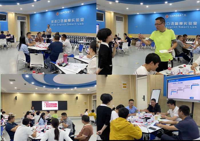 8月27日,22位教师分成4组开展首次微型教学演练,包括10分钟授课、书面反馈、口头反馈等环节。经过实操演练,各学员逐步学会将BOPPPS教学模式应用到自己的教学课程中。同时,在专业引导员带领下,学员以小组为单位进行学习研讨活动,通过迷你课程演练和反馈,促进教师自我教学反思和教学能力提升。